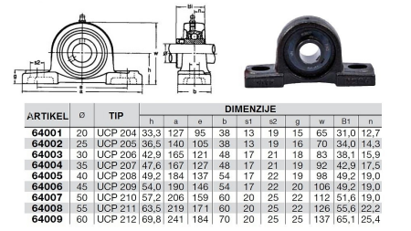 KROGLIČNI LEŽAJ UCP 212 - FAG