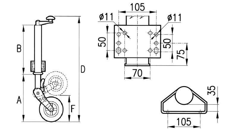 NAVOJNA PODPORNA NOGA S KOLESOM 60 mm 400 kg
