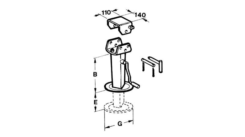 NAVOJNA PODPORNA NOGA Z PRITRDILNIM DELOM HOD 135 mm 4000 kg